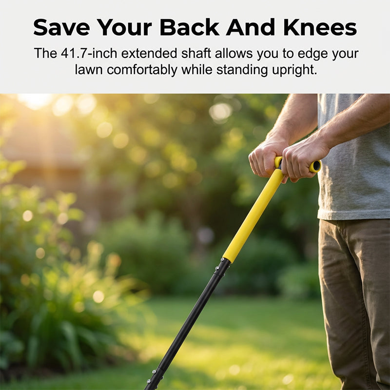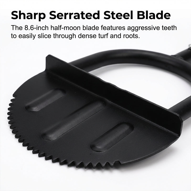 SERRATED STEEL BLADE - Create clean, deep edges along lawns and gardens. The sharp, serrated design effortlessly slices through dense turf and tough roots, ensuring a professional finish with minimal effort.